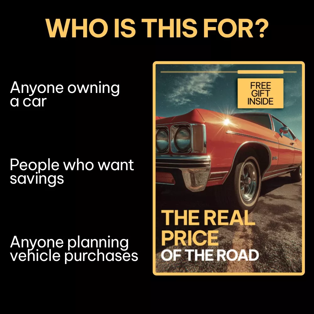 This ebook is for commuters, first-time car owners, budget-conscious households, and anyone who wants clarity before buying or keeping a car. Unlike generic finance guides, The Real Price of the Road focuses entirely on real-life scenarios, everyday habits, and the often ignored hidden costs of car ownership—without complex jargon or unrealistic advice.