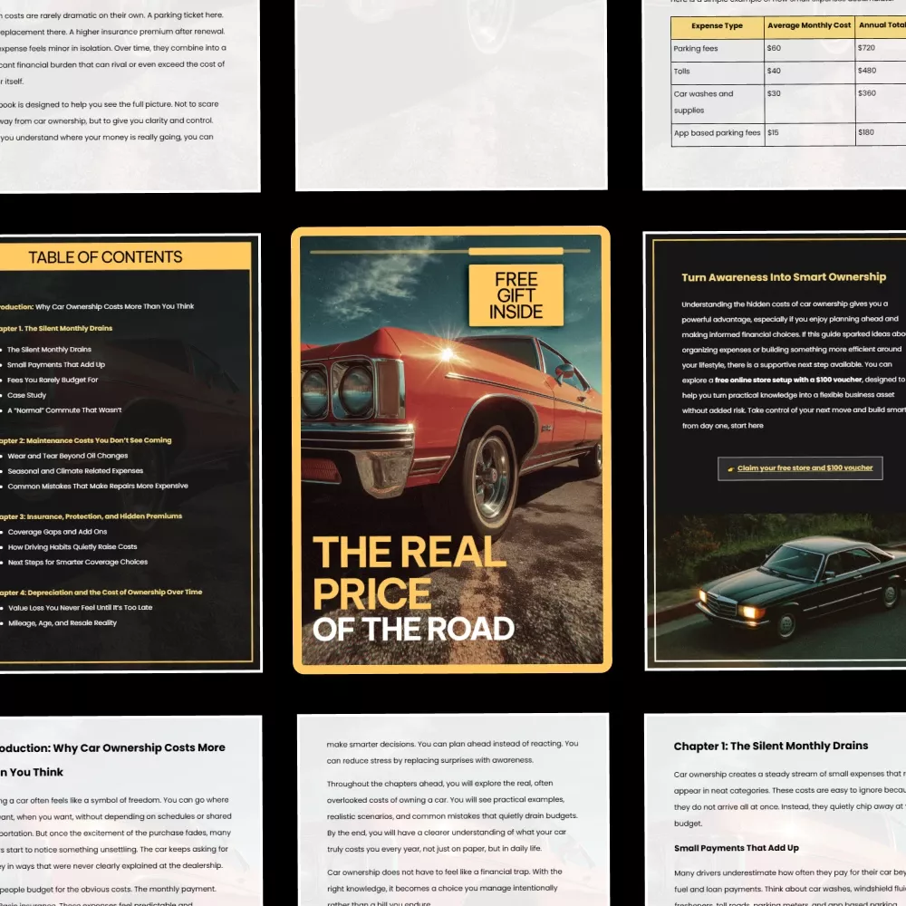 Most people think they understand what owning a car costs. Gas, insurance, maybe the occasional repair. The Real Price of the Road goes deeper—revealing the expenses that quietly drain your money month after month. This practical, eye-opening ebook uncovers the hidden costs of car ownership that rarely show up in simple budgets, helping you finally see the full financial picture behind life on the road.