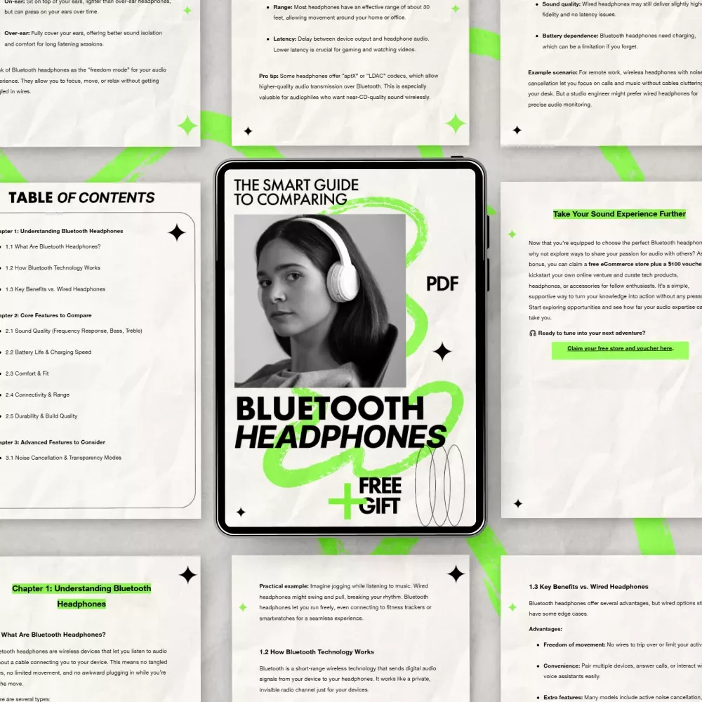 Stop guessing and start choosing with clarity. The Smart Guide to Comparing Bluetooth Headphones gives you the tools, insights, and confidence to invest in headphones you will truly enjoy. Download this ebook today and master how to compare bluetooth headphones like a pro before your next purchase.