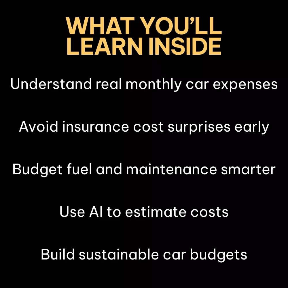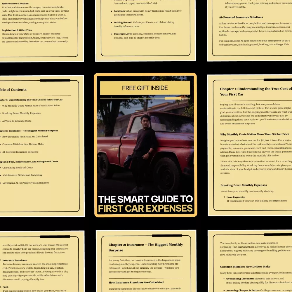 This guide is perfect for anyone buying their first car who wants to avoid financial surprises. Unlike generic car budgeting resources, this guide focuses on real-world monthly expenses and shows you how to use AI-powered tools to stay ahead of costs. It combines practical budgeting advice with modern technology, making it a smart, forward-thinking resource you won’t find elsewhere.