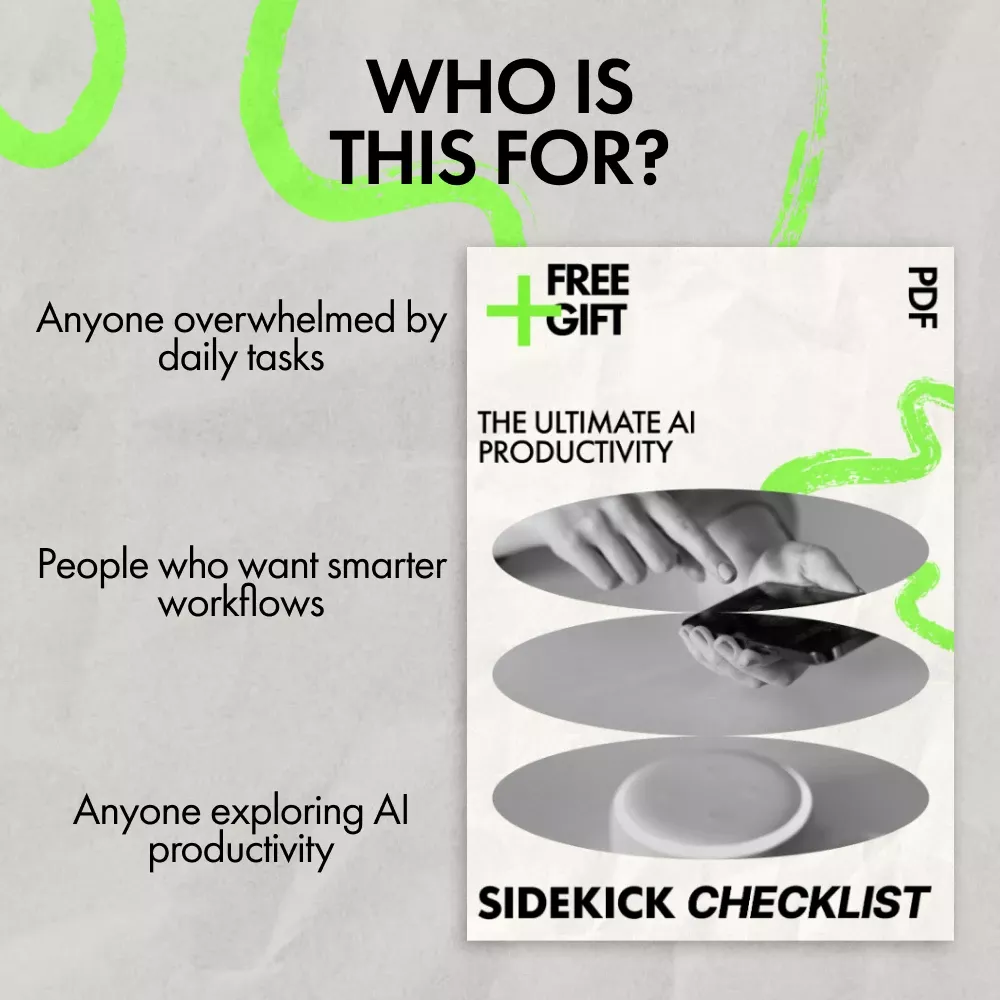 Stop wasting time testing random tools and start using AI with purpose. Download The Ultimate AI Productivity Sidekick Checklist today and turn your daily chaos into a streamlined, focused workflow that actually works for you.