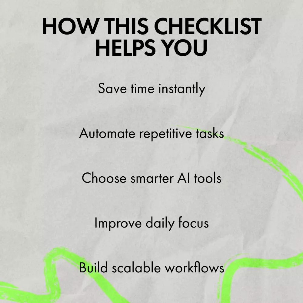 This checklist is ideal for busy professionals, freelancers, entrepreneurs, content creators, students, and anyone who wants to work faster and smarter using AI. If you’re new to AI or tired of trying tools that don’t fit your workflow, this was created for you.