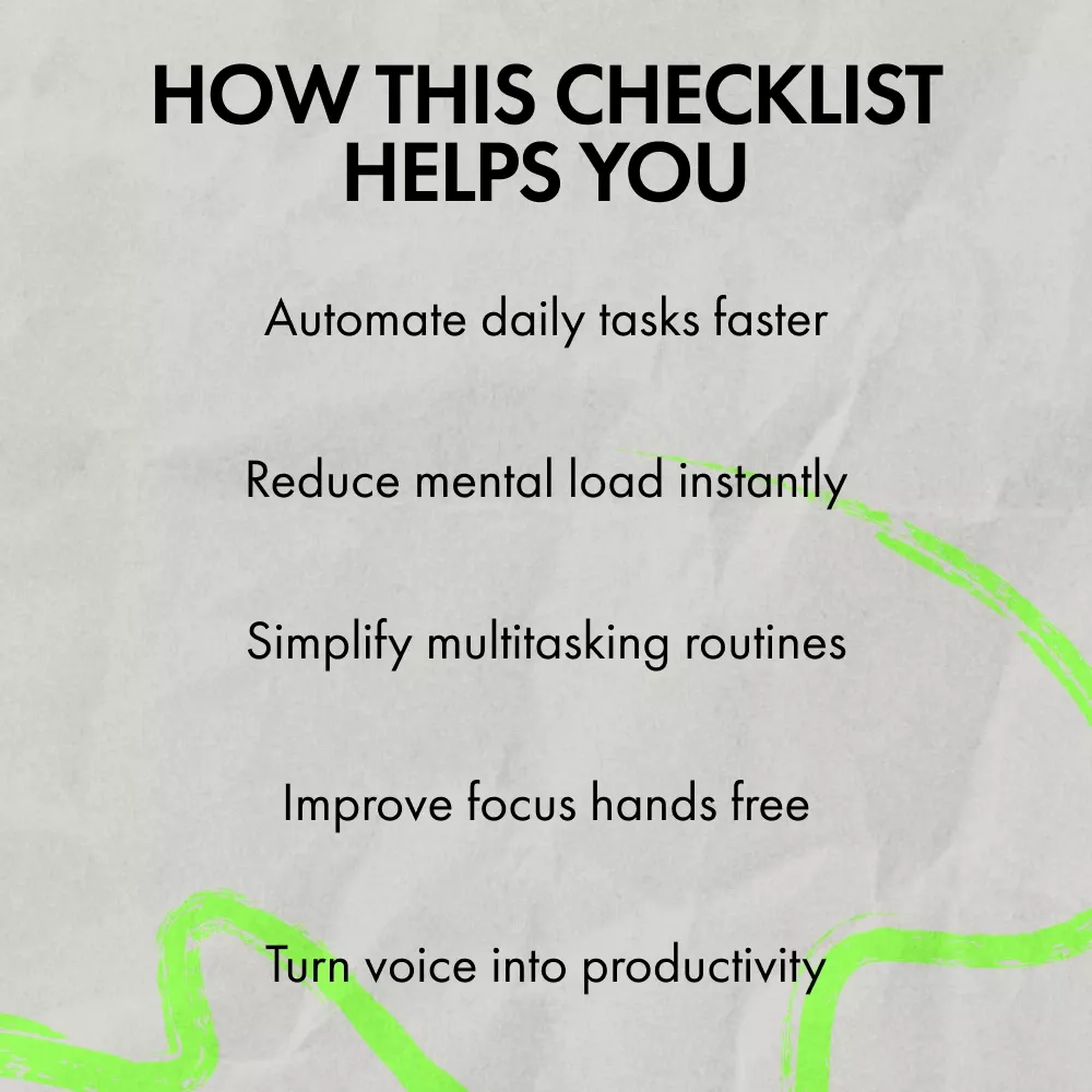 If you feel like your to-do list keeps growing while your time keeps shrinking, this Time-Saving AI Voice Commands checklist is designed for you. This easy-to-follow digital checklist shows you exactly how to use AI voice assistants to automate daily tasks, reduce manual work, and reclaim hours every week. Instead of tapping, typing, or switching between apps, you’ll learn how to speak simple commands and let AI do the heavy lifting. Whether you’re new to voice assistants or already using them casually, this guide helps you turn everyday voice features into a powerful productivity system.