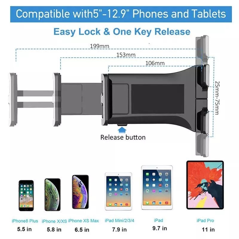 - Adjustable to fit devices from 4.7″ to 12.9″.