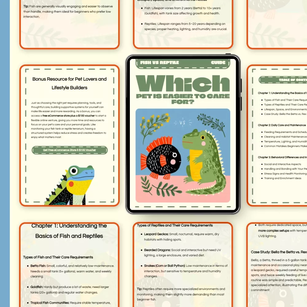 Just finished reading this digital guide and it's a life-saver! The practical insights into fish and reptile care helped me decide on my first pet. š vs š¦? I know now!