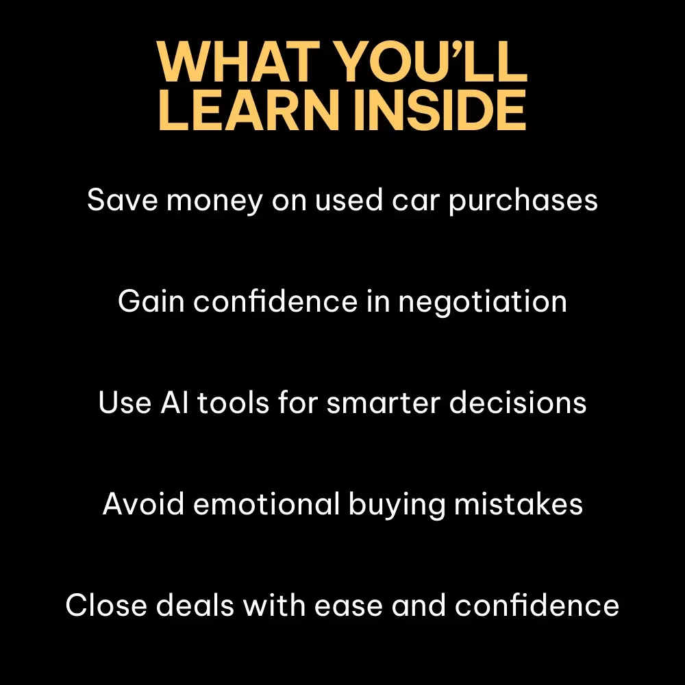 - Master the Art of Reading Sellers – Learn to spot the signals that give you the upper hand, whether dealing with a private seller or a dealership.