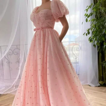 Pink Sequin Heart Puff Sleeve Mini Dress