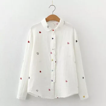 Love Heart Print Women’s Long Sleeve Cotton Blouse