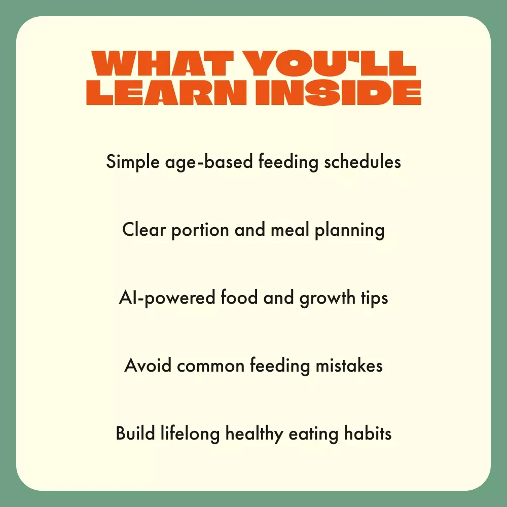 - Chapter 2: Feeding Schedules Made Simple: Discover age-based feeding schedules, portion guides, and common feeding mistakes to avoid.